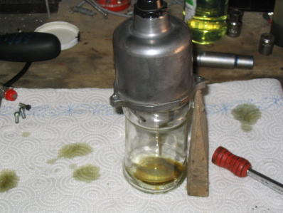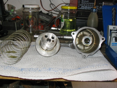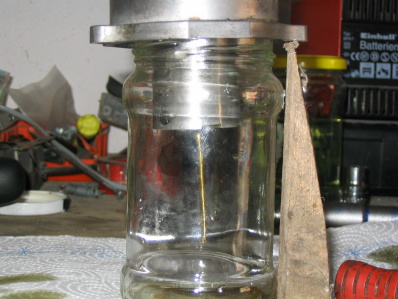 Ich hab die Glocke komplett ausgebaut und mit Öl gefüllt. Das Öl fing gleich an unten aus den beiden Bohrungen im Kolben herraus zu laufen. Im Vergaserboden waren auch noch Ölrückstände. -