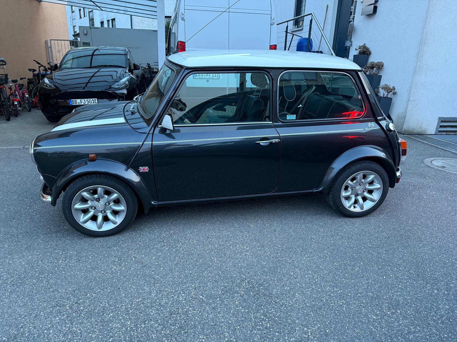 Zumindest horizontal ist mein Mini an der Hinterachse nicht symmetrisch. Gemessen an der Aussenkante der Verbreiterung steht das rechte Hinterrad weiter innen wie das linke. Ich vermute, dass die Plastikverbreiterungen ihren Teil zur Asymmetrie beitragen. Die Schwellerkante erscheint mir jedenfalls verlässlicher.