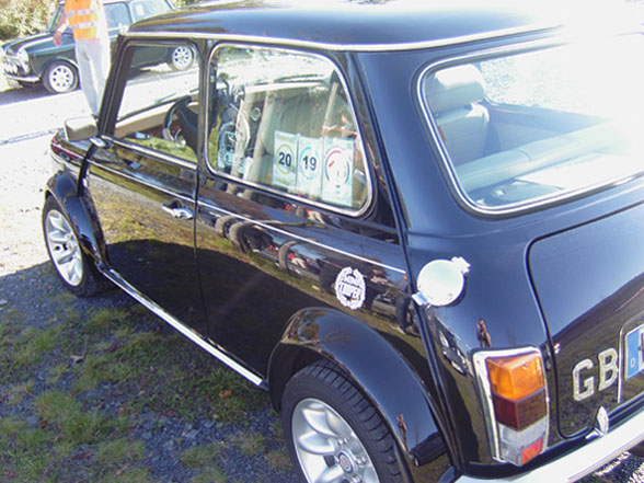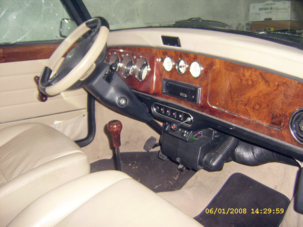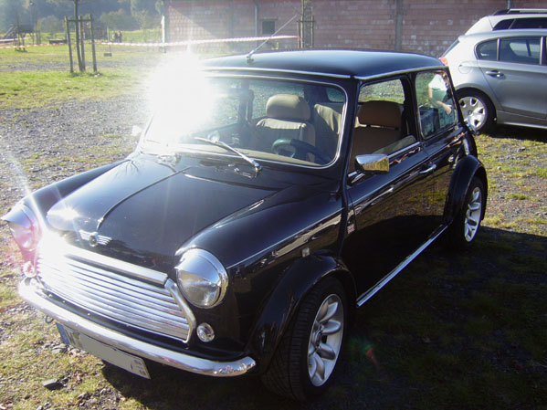 Volllederausstattung Beige/Alpaca, Chromdachantenne, Chromtürschweller, Chromnummernschildbeleuchtung, weiße Blinker, Chromspiegel (von einem MG), Schmutzfänger von Cooper, eingetragener Bastuck Sportauspuff (mächtiger Sound), Flip-Tankdeckel, Schlafaugen, K&N Luftfilter mit ABE, Frontscheibe mit Blaukeil, Wurzelholzaustattung, Hohlraumversiegelt mit Hohlraumwachs, Radio/CD, Spurverbreiterung vorne und hinten (hierdurch drückt sich der rechte Vorderreifen beim kompletten einschlagen nach links leicht an der Verbreiterung, da es noch nicht ganz bearbeitet ist), etc.Mängel / Rost: Ganz minimaler Rost an den typischen Stellen