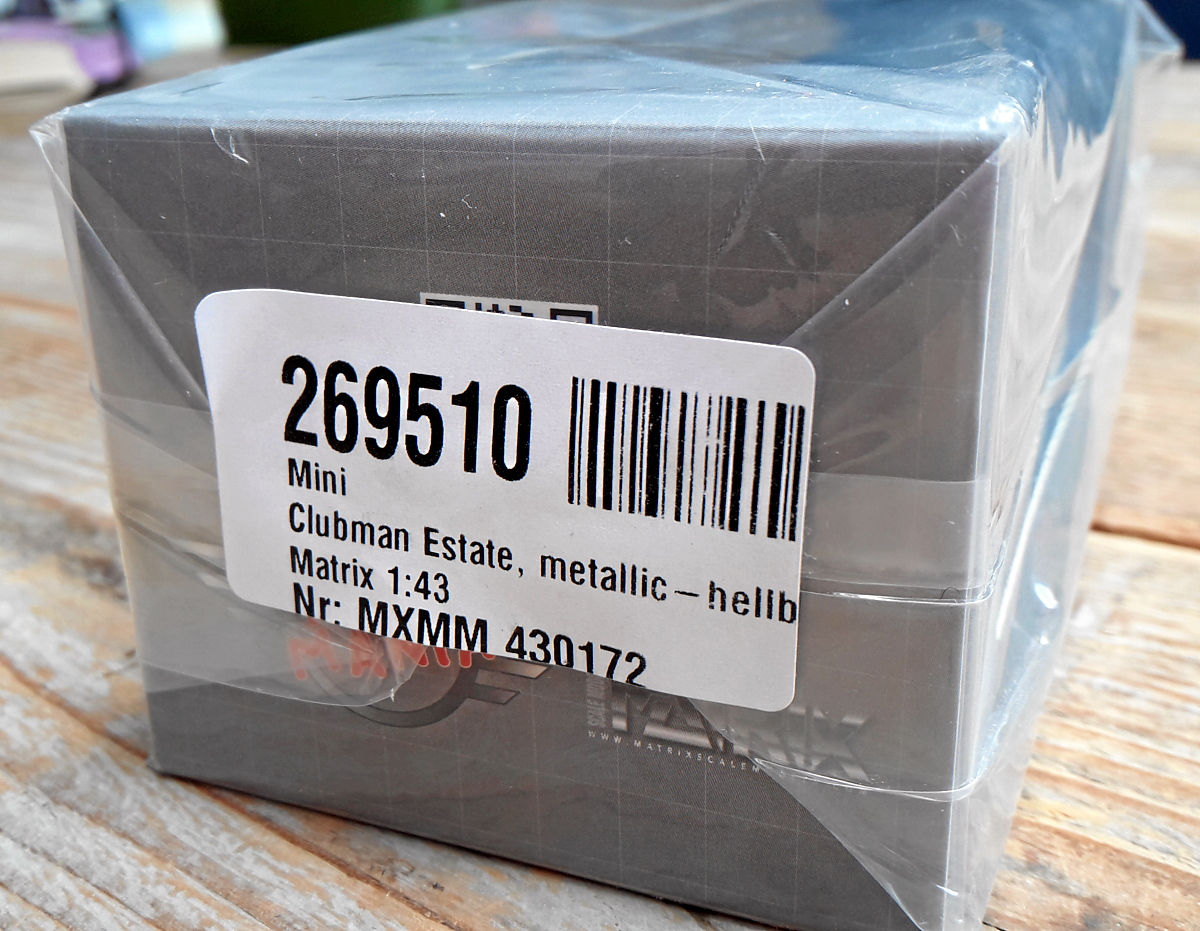 gebe zwei überzählige Modelle aus meinem Modell-Fundus ab. Einmal einen absolut neuen, original verpackten Mini Clubman Estate von Matrix, Maßstab 1:43. Farbe blau-metallic, Material Resine, viele schöne Details ähnlich Spark oder Ebbro. Dieses Modell ist im Handel schon länger vergriffen. Damaliger Neupreis betrug 110,- EUR, Forumspreis sind nicht verhandelbare (!) 80,- EUR. Das "ausgepackte" Modell zeigt mein eigenes Vitrinen-Exemplar.