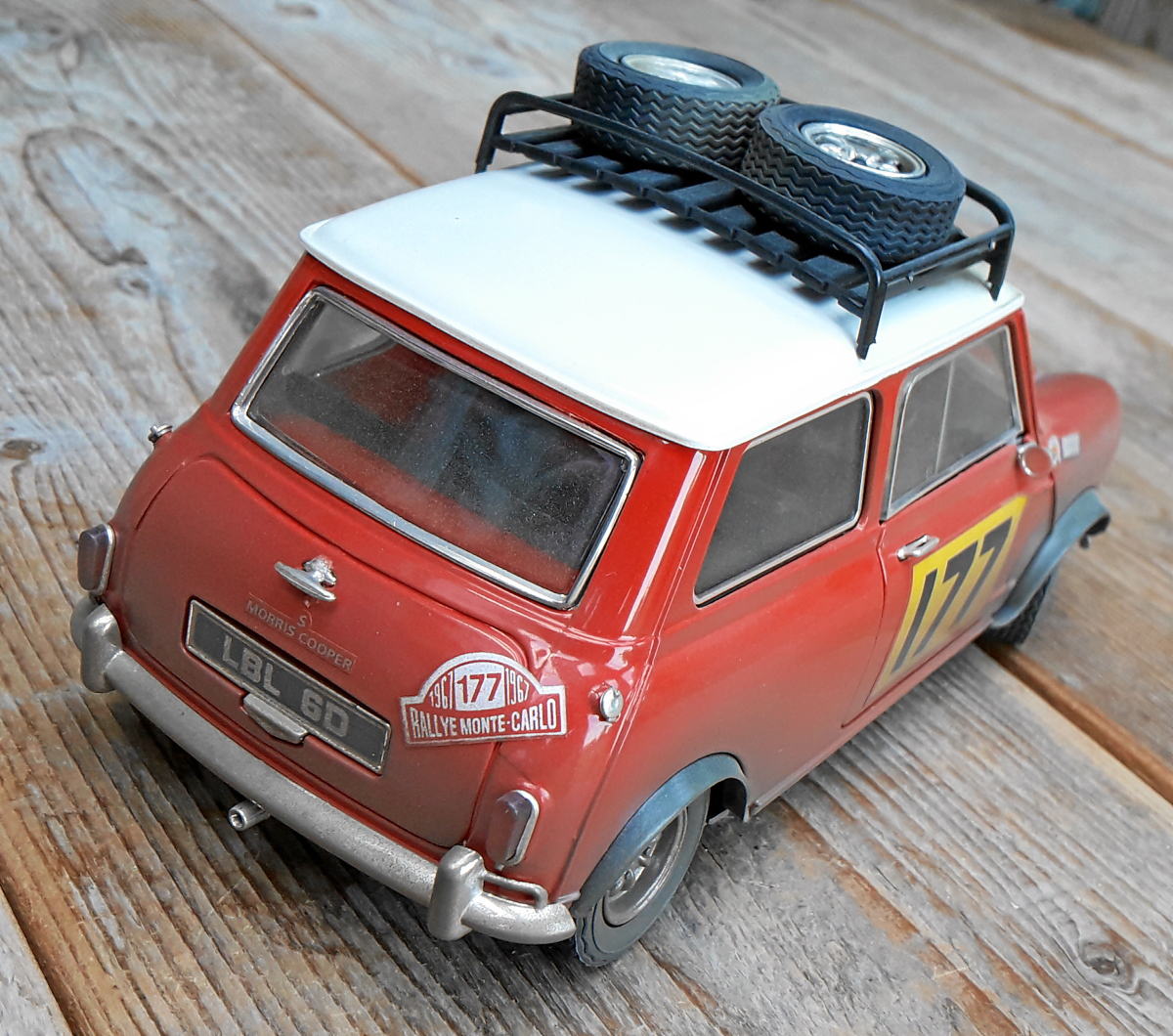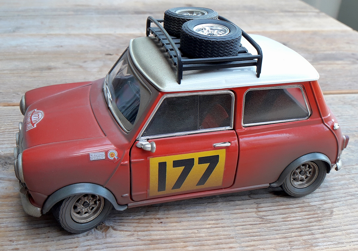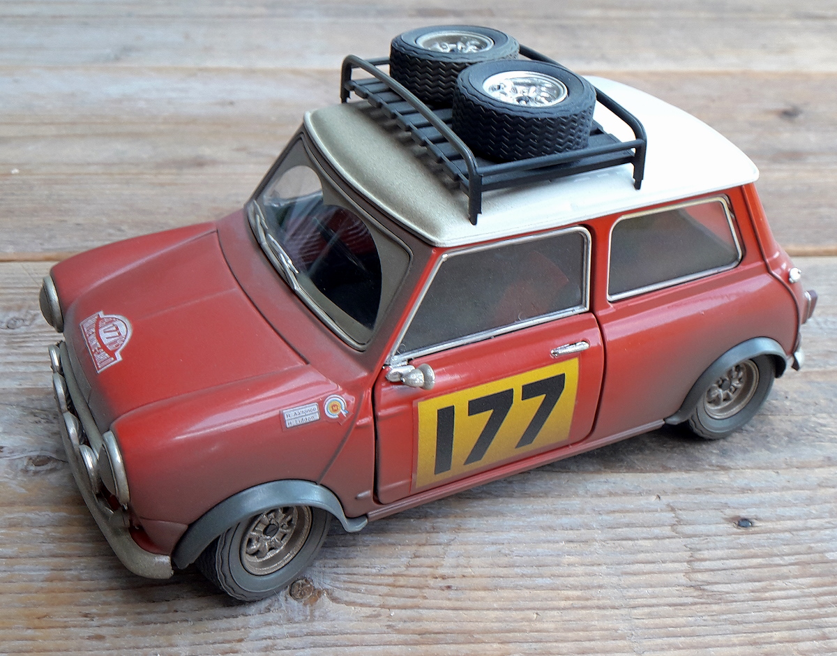 Modell 1: Bob Holden Bathurst Mini Cooper, mit den characteristischen roten Punkten. Modell ist in sehr gutem Zustand, ohne sichtbare Gebrauchsspuren (außer Schleifer)