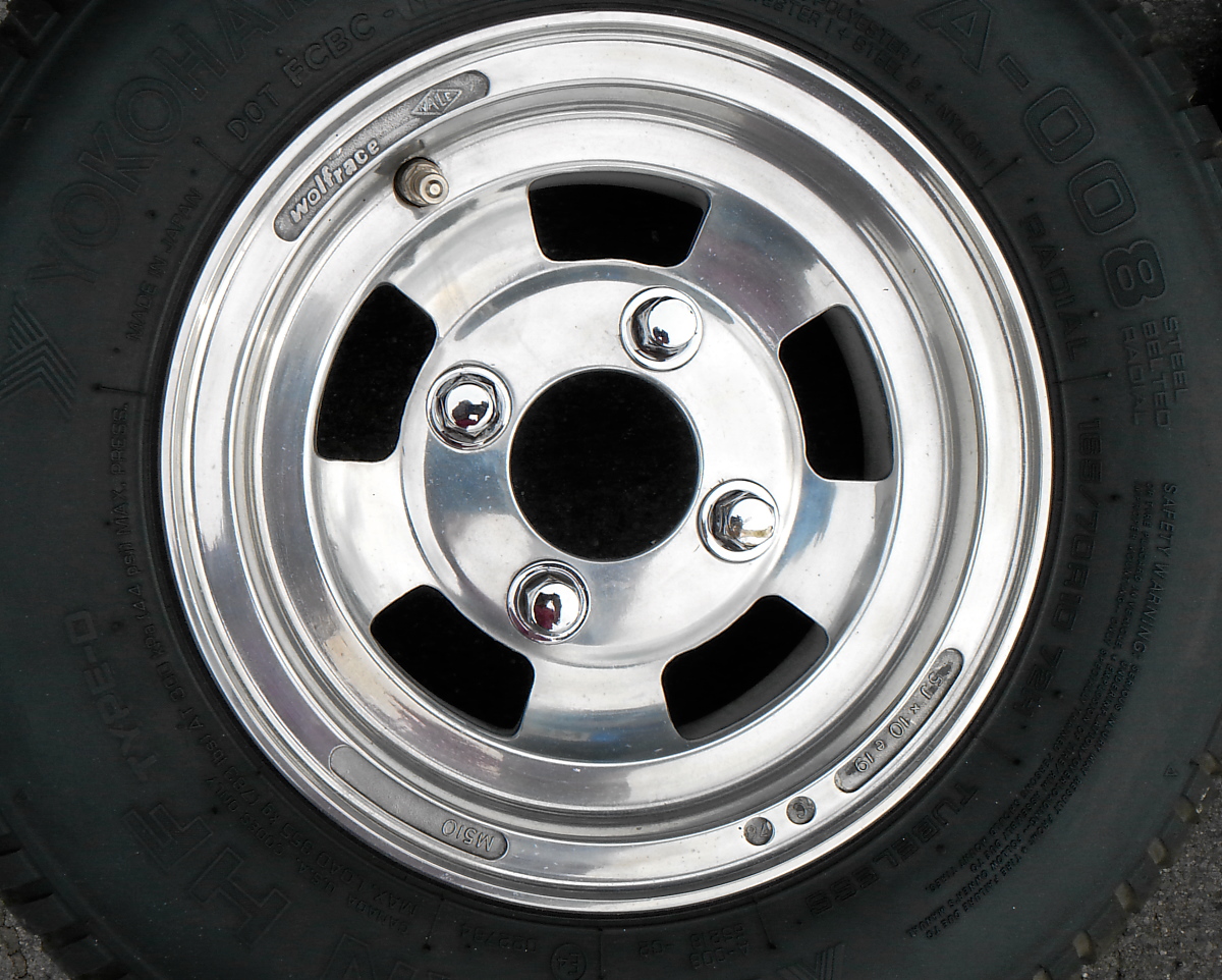 Verkaufe einen Satz = 4 Stück polierte Wolfrace 5x10 Zoll Felgen. Passende Radmuttern in verchromter Ausführung sind dabei. KEINE Center-Caps!