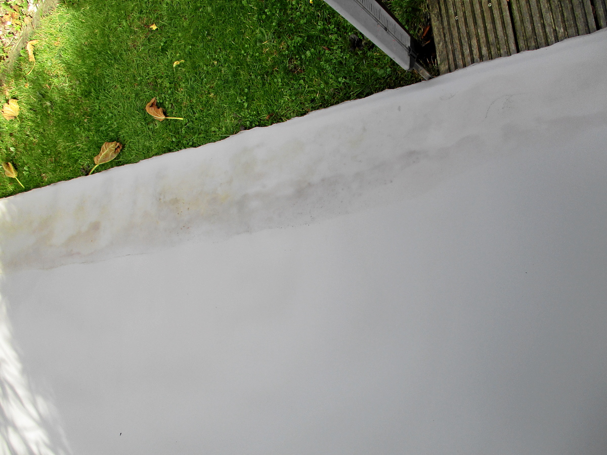 Leider hat sich beim Ausrollen für's Foto ein Schaden bzw. eine Verschmutzung in einem Teilbereich gezeigt. Wahrscheinlich Folge einer feuchten Lagerung. Keine Ahnung ob man das wieder weg bekommt, hab's nicht ausprobiert.
