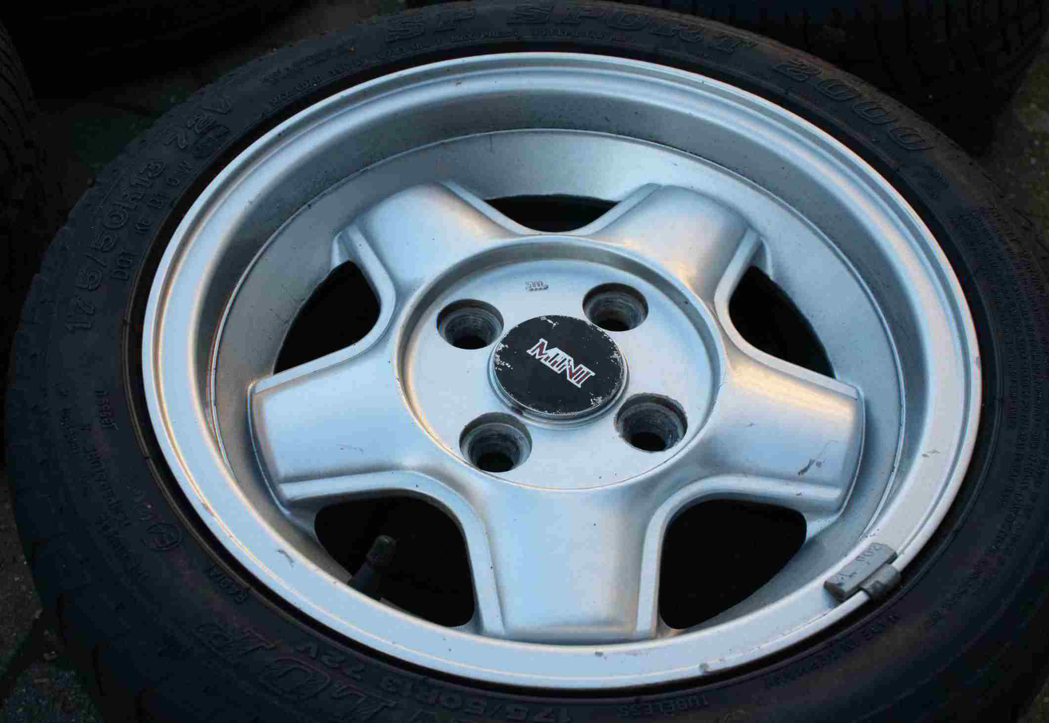 Ich verkaufe 4 Felgen Revolution RFX 6x13 mit je 2 Reifen Dunlop SP Sport (ca.3mm Profil, DOT 399) und Fulda Assuro Carat (ca.7mm Profil, DOT 2401), vom Sondermodell Mini 35.