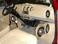 Cockpit sowie die Aufnahmen für die Lautsprecher bestehen aus GFK. Nach der ganzen Schleifarbeit und Anpassung (ca. 8 Wochen) habe ich alles vom Sattler beziehen lassen. Die Sitze sind von uns bezogen worden wobei wir den Bezug nähen lassen haben. In der Rücksitzlehne befinden sich die Verstärker und der Kondensator. Die Sitzfläche wurde nur mit dem neuen Leder bezogen (Bilder folgen). Leider ist der Kleine noch nicht ganz fertig. Hätte Euch gern das Endprodukt gezeigt, es fehlt mir die Zeit... Viel im Geschäft zu tun.