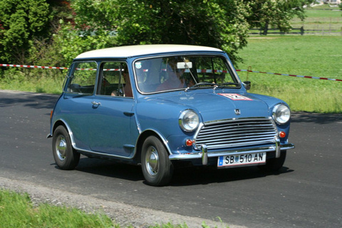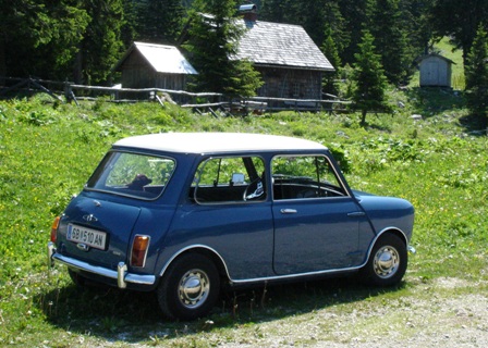 Der Kleine ist ein 1000er Morris Cooper Mark II von 1969.