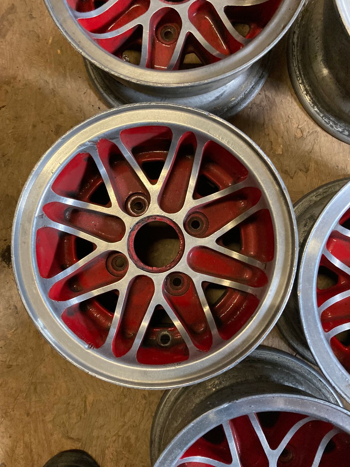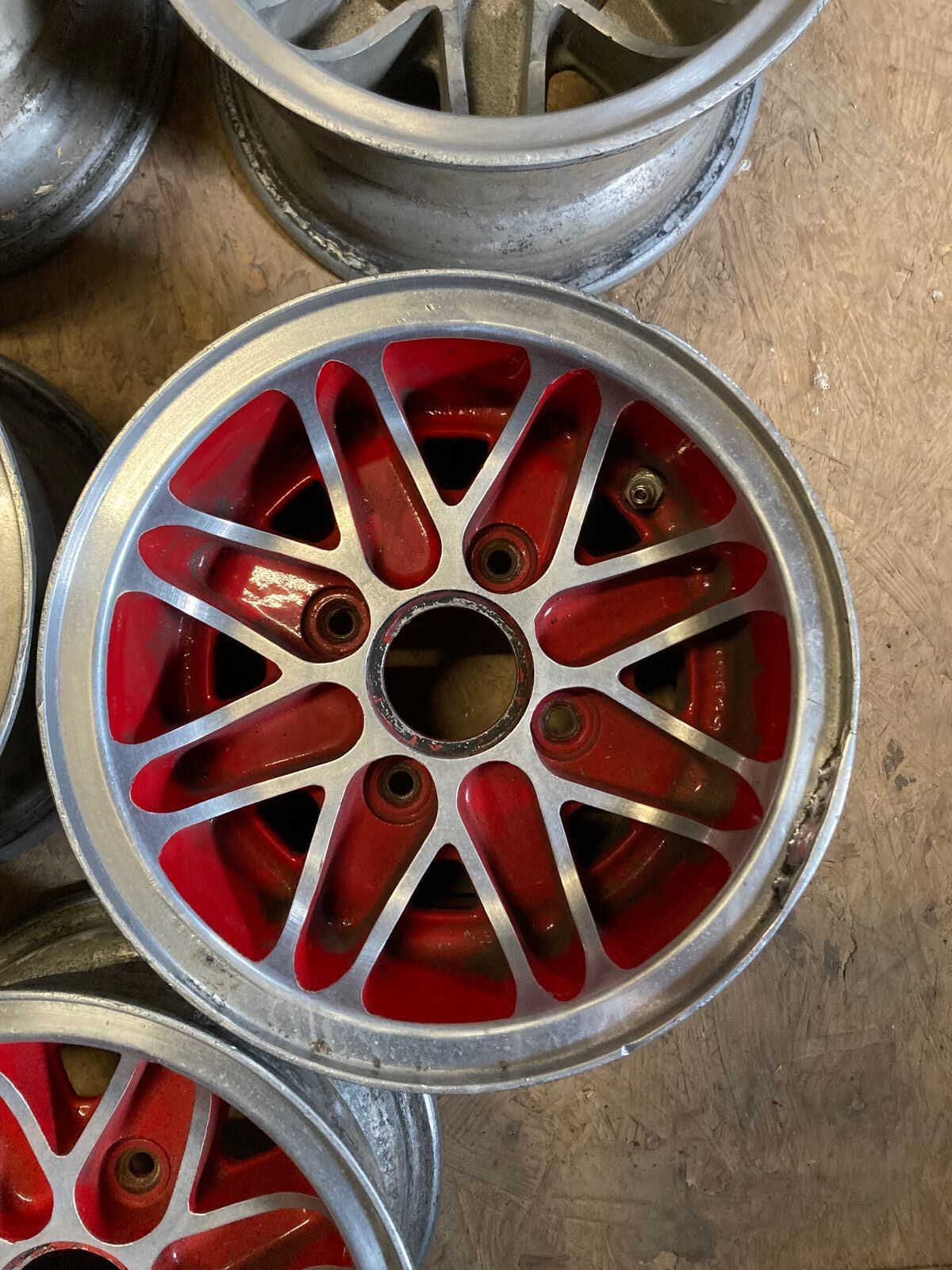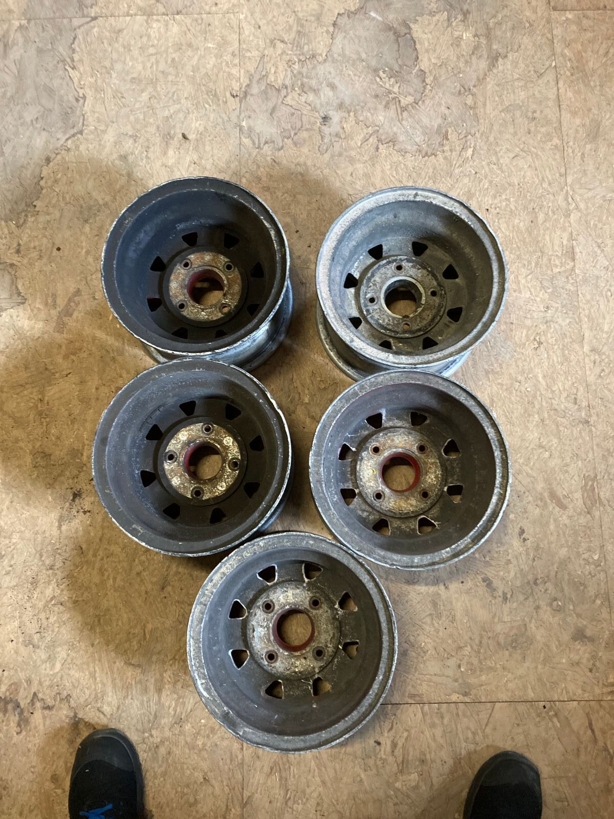 Zum Verkauft steht ein Satz (?) umgeschweißter Firsat Stahlfelgen der Größe 5,5x10". Drei Felgen sind bereits umgearbeitet. Es liegen zwei normale 4,5x10" bei, um daraus eine 4. Felge zu bauen.