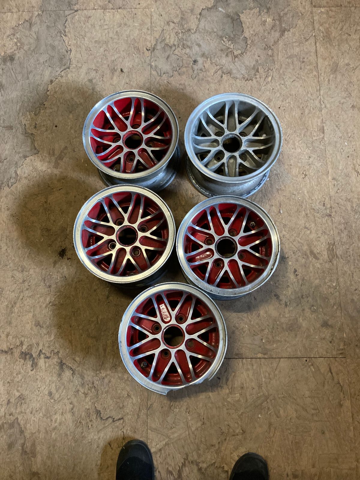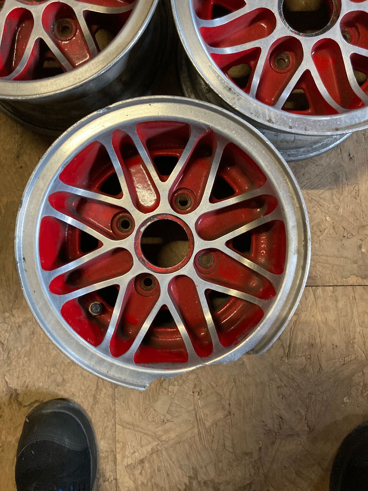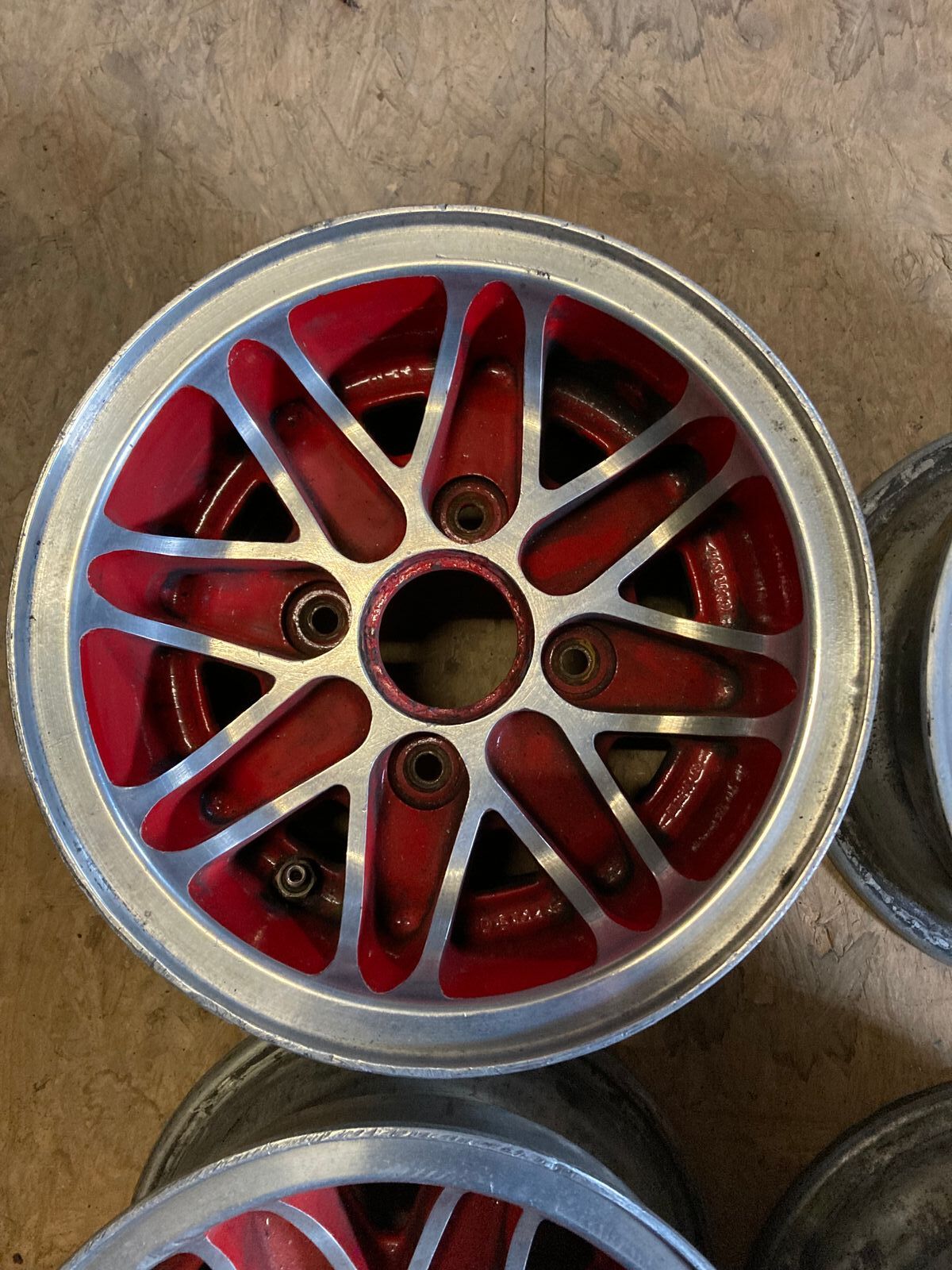 Zum Verkauft steht ein Satz (?) umgeschweißter Firsat Stahlfelgen der Größe 5,5x10". Drei Felgen sind bereits umgearbeitet. Es liegen zwei normale 4,5x10" bei, um daraus eine 4. Felge zu bauen.