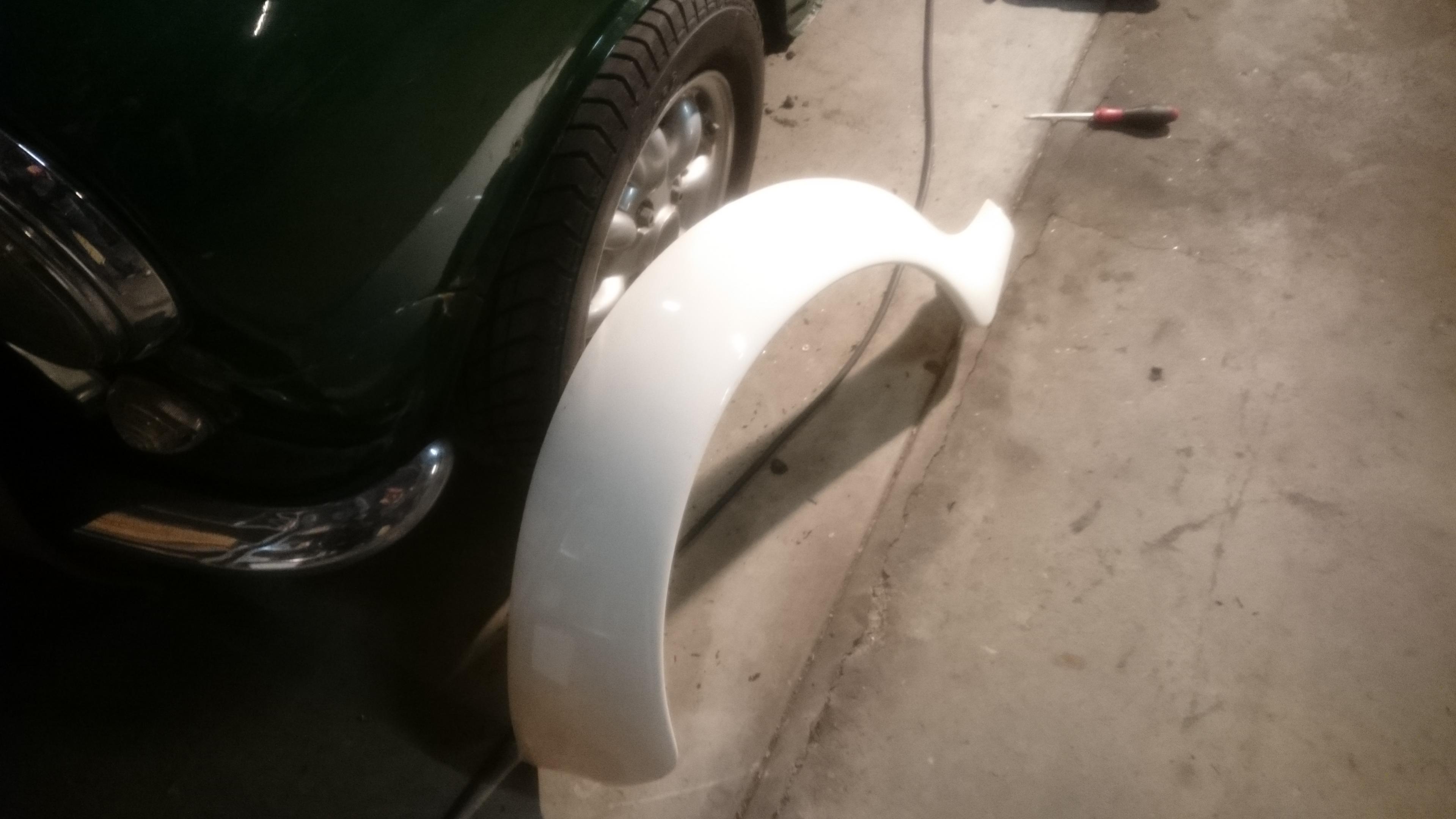 Mini ist seit 2011 abgemeldet und hatte keine Zeit mehr was daran zu machen. Jetzt will ich ihn wieder fahrbereit machen, aber ohne die super breiten Kotflügel.