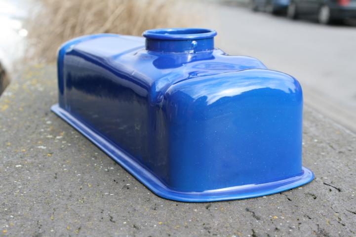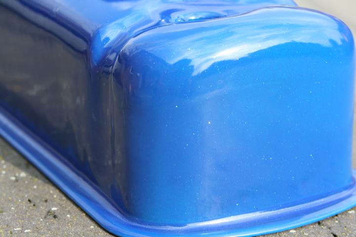 Blauer Ventildeckel,gestrahlt,grundiert und anschliessend in Glitteroptik pulverbeschichtet 35,- € inkl. Versand.