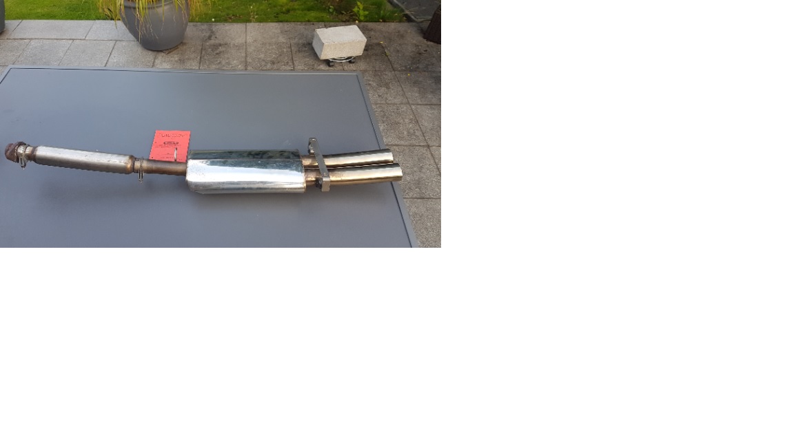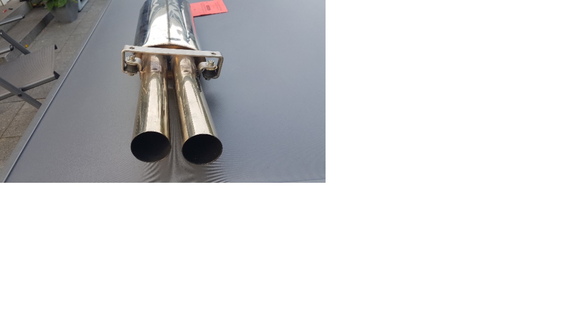 ich verkaufe hier eine Bastuck Auspuffanlage mit roter ABE. Doppelrohr mittig, inkl. Vorschalldämpfer und Halter.