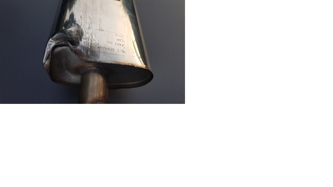 Allerdings hat die Anlage mal nen Aufsetzer gehabt, Der Endtopf ist an einer Stelle eingedrückt aber absolut dicht, Halterungen dabei !!!!