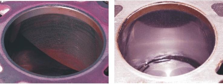 In den unten stehenden Abbildungen sind die Zylinderoberflächen des Motorblocks vor und nach der Behandlung dargestellt.