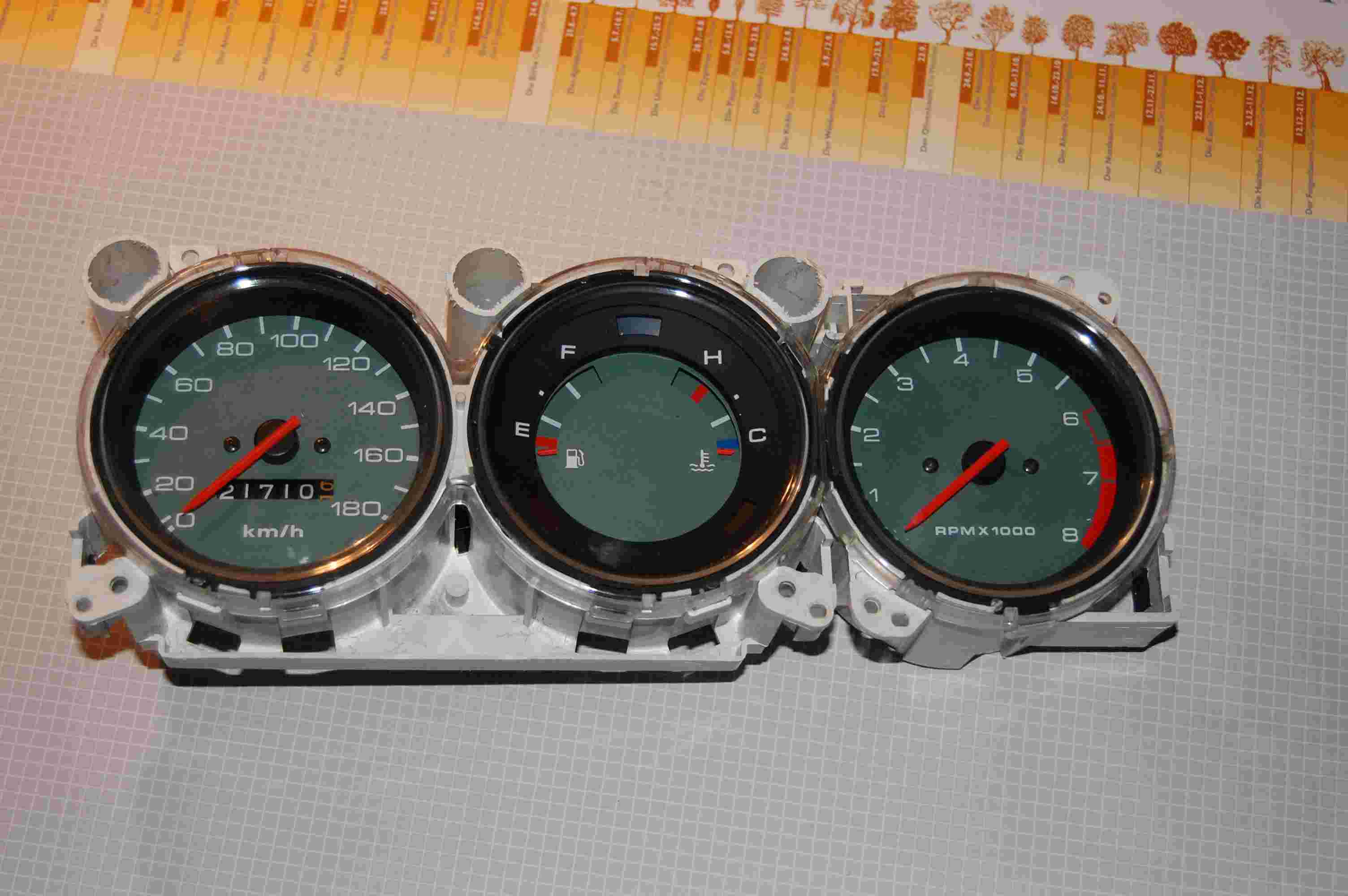 hatte dich ja schon bzgl. des Brettes angeschrieben....ich habe die Armaturen recht preiswert in der Bucht UK bekommen...ebenso das Tacho...Bilder hattest ja schon bekommen