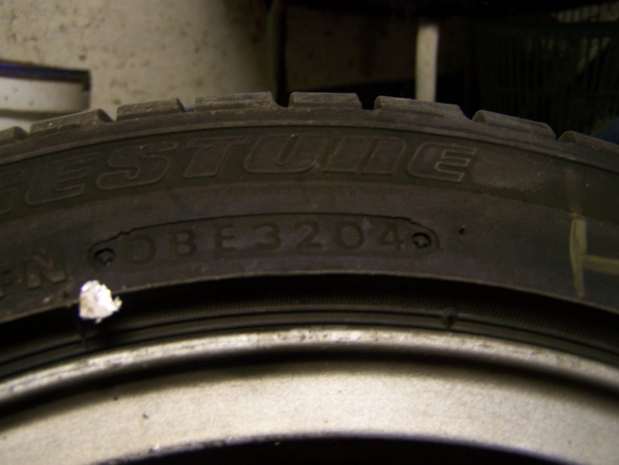 Aufgezogen sind BRIDGESTONE POTENZA 175/50R13 V. Herstellungsdatum ist DOT 3204. Die Profiltiefe liegt ca. bei 4 - 5 mm. Müsste sonst nochmal genau messen.