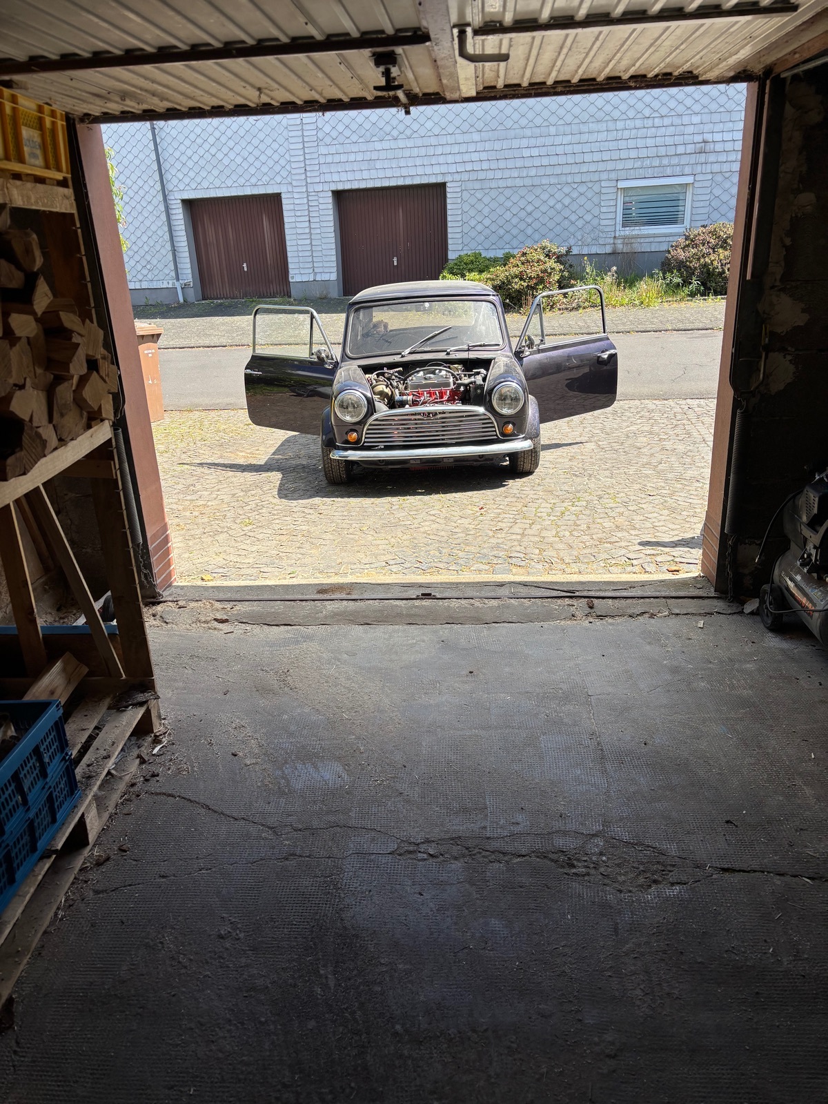 Nachdem drinnen alles fein, Mini kurz vom Staub befreit, Sitze und Teppich ausgebaut, da Schimmel sich breit gemacht hatte mal.