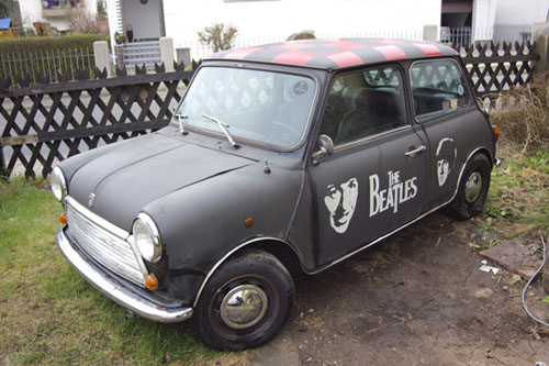- selbst gestaltete Beatles Aufkleber auf beiden Fahrzeugseiten, Schriftzug "Pennylane Edition" auf der Heckklappe