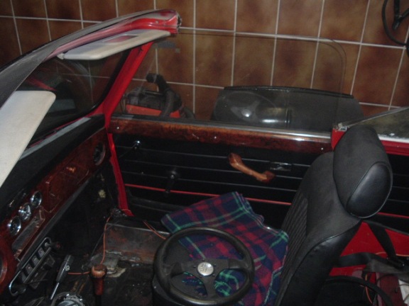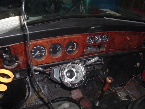 Mahagoni Armaturenbrett, Victor 32cm Lederlenkrad, Chromstoßstangen.