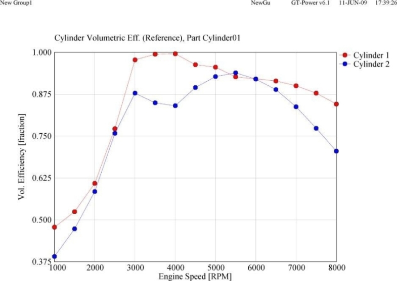 Bis ca. 5000 1/min dreht er sauber, hat allerdings auf den äußeren Zylindern ein wenig mehr Dunst, was die GT-Power Simmulationen auch bestätigen. Der Liefergrad geht aussen teilweise auf ca. 1 und innen nur bis knapp 0,9. Man darf den Simmulationen natürlich auch nicht zu viel Aufmerksamkeit schenken, aber bisher arbeiten Theorie und Praxis ganz gut zusammen. Was den von Dir angesprochenen Effekt mit den Schwingrohren angeht, hab ich derzeit bei Drehzahlen > 5000 1/min zu kämpfen. Lauf Simmulation sollte das zwar klappen, aber das blöde Programm geht auch einfach davon aus, dass ich den genauen KW-Winkel für die Einspritzung weiß ;).