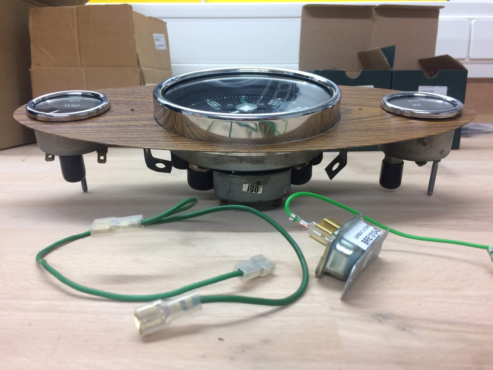 Verkaufe einen SMTIH Mitteltacho samt Öldruck-, Wassertemperaturinstrument, inklusive Spannungsregler und Holzdekor für Tachoei.