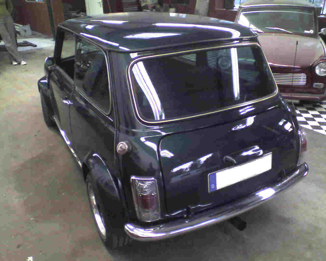 Absolutes Sommerfahrzeug ohne Rost, Neulackierung vor ca. 5 Jahren, Austauschmotor mit ca. 43000 KM (53PS), Lichtmaschine neu, REVOLUTION-Felgen 7Jx13, Radhausverbreiterung, Sportluftfilter, Fächerkrümmer, BASTUCK-Sportauspuffanlage, Teillederausstattung, Holzlenkrad, RC - PANASONIC (CD-Wechsler anschließbar), grüne Scheibentönung, Klarglasrückleuchten, MORRIS-COOPER-Grill, weiße Blinker, verchromte Schwellerleisten und Waschdüsen, Torpedospiegel Dazu gibt es ,Original-Grill - Lenkrad - Luftfilter - Spiegel, den ausgebauten alten Motor (63PS) mit Getriebe (defekt, wobei der Zylinderkopf unbeschadet ist).Wenn ihr noch mehr Bilder sehen wollt...auf Anfrage. Eventuell Tausch/Inzahlungnahme gegen US-car oder Motorrad bis Baujahr 60 möglich