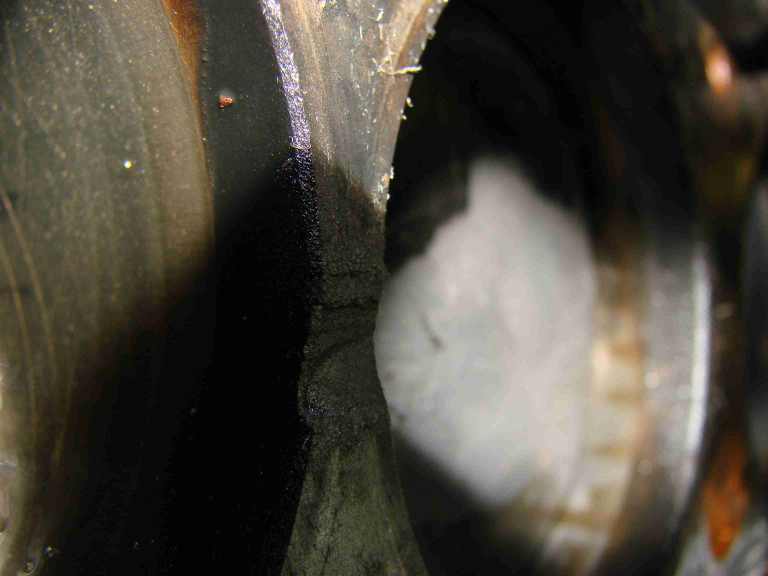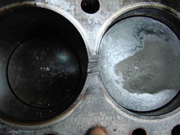 Die Kopfdichtung ist wie vermutet zw. Zylinder 1 und 2 durchgebrannt. Was jedoch viel schlimmer ist, der Block ist zw. den Zylindern