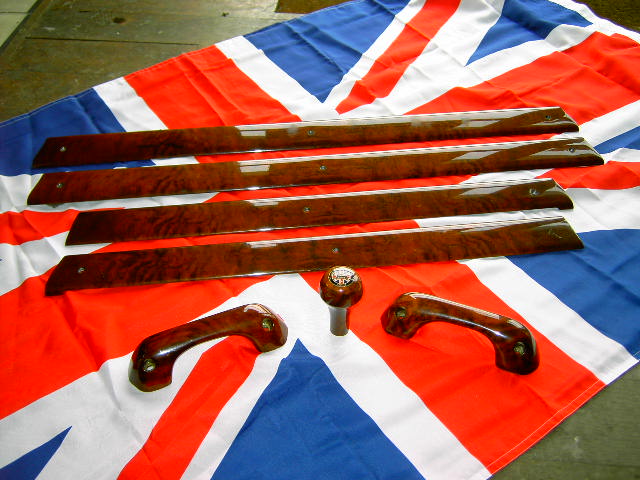 veraufe Holzleistensatz (4-teilig) aus Wurzelholz mit den dazu passenden Griffen und dem Holzschaltknauf.