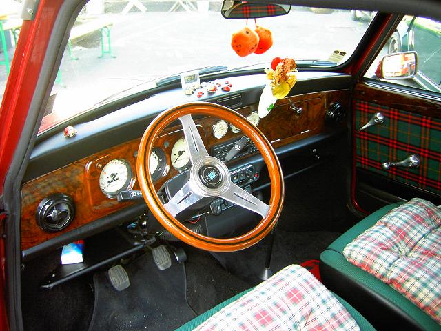 Mini Balmoral (rote Gurte, grün/rot karierte Sitze) 53 PS TÜV/AU 10/06, g-Kat, Wegfahrsperre, Alarm, dunkel rot metallic, Faltdach.
