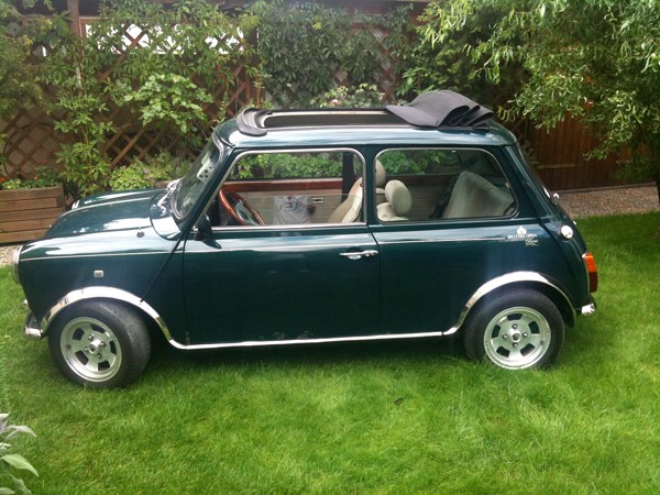 Der einzige Mini den ich mit diesen Felgen gesehen habe.Optisch auf "alt" zurückgebaut: Chromrandblinker in weißem Glas Lukas!!!, weiße Seitenblinker zweifarbige Rückleuchten, MK1 Kofferraumgriff, verchromte Kennzeichenbeleuchtung