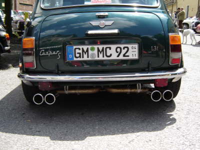 Verkaufe meinen schönen Mini Cooper in british-racing-green. Trotz lediglich 53 PS macht er richtig viel Spass, und verbreitet beinahe Cabriofeeling mit seinem riesigem elektrischen Faltdach. Die Innenausstattung ist beiges Velours und er hat einen mittigen Sportauspuff mit Doppelendrohren sowie weisse Rückleuchten und Blinker vorne und an den Seiten. Er rollt auf Minilite Alufelgen mit fast neuer 165/60R12 Bereifung sowie viel Chrom und Holz innen und aussen daher. Als da wären: Chromgrill, Chromwischer, Chromverbreiterungen, Edelstahleinstiegsleisten mit "Cooper"-Schriftzug, Holzamarturenbrett und Türgriffen, Holzleisten unter den Scheiben, Holzschaltknauf sowie ein poliertes Holzlenkrad. Der Wagen ist angemeldet und kann gerne Probe gefahren werden!