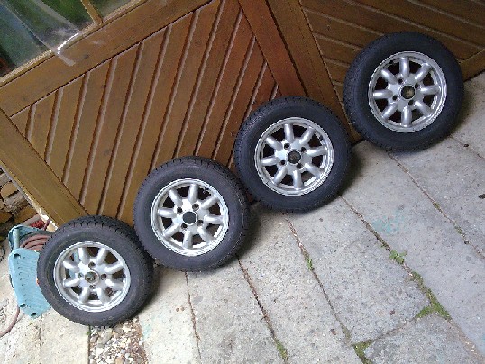 Hallo habe 2 Sätz Minilite Felgen abzugeben einer mit Sommerreifen noch hälfe Profil.