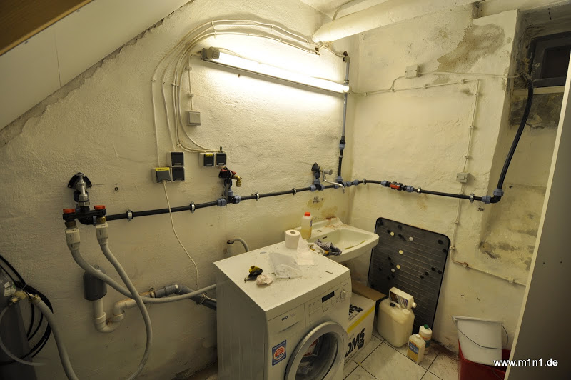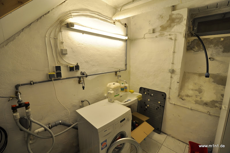 Das Geraffel an der Wand: verklebtes PVC Rohr.
