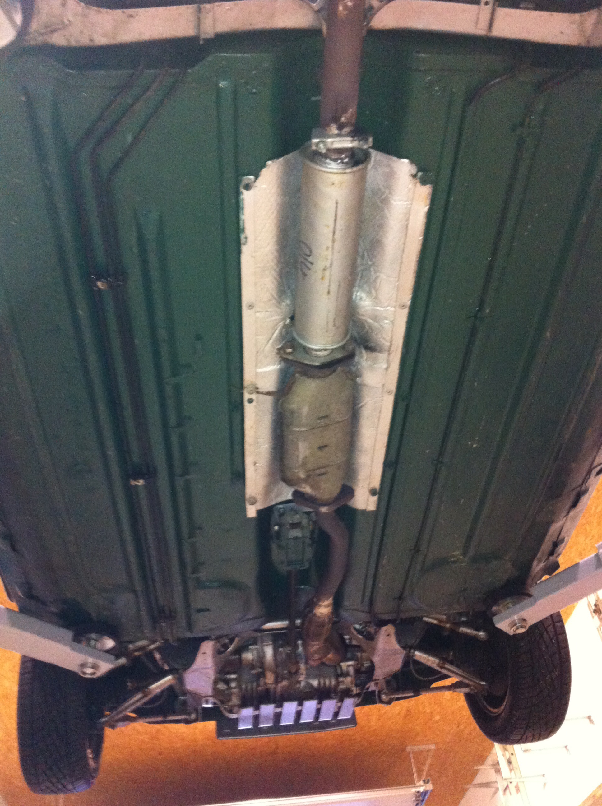 Die restlichen Fahrwerks-Teile sind in der gleichen Farbe silber lackiert,Der gesamte Unterboden wurde gestript, die Karroseriedichtmasse entfernt und zunächst mit Branthp Korrux beschichtet, dann mit neuer Dichtmasse versehen und nach dem Trocknen eneut mit Brantho beschichtet.