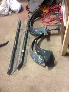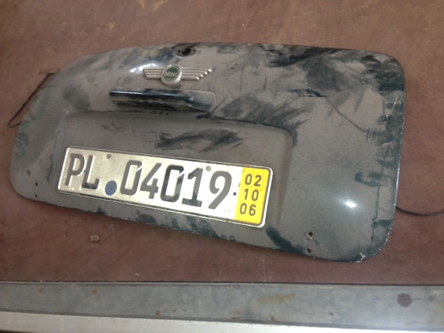 British Racing Green, ebenfalls guter Zustand, die Innenseite der Klappe ist nicht wie bei den meisten klappen mit einem diagonal laufenden blechstreben Versehen sondern etwas massiver mit gewellter Innenseite.Ebenso noch einen Satz Verbreiterungen für die 13" Minis inklusive schweller vebreiterung. Orginal miniteile, mit Nummern geprägt. Ich glaube ich habe auch noch einen Brief wo diese eingetragen sind. Die Verbreiterungen sind Reparaturbedürftig, aber aus meiner Sicht noch rettbar.