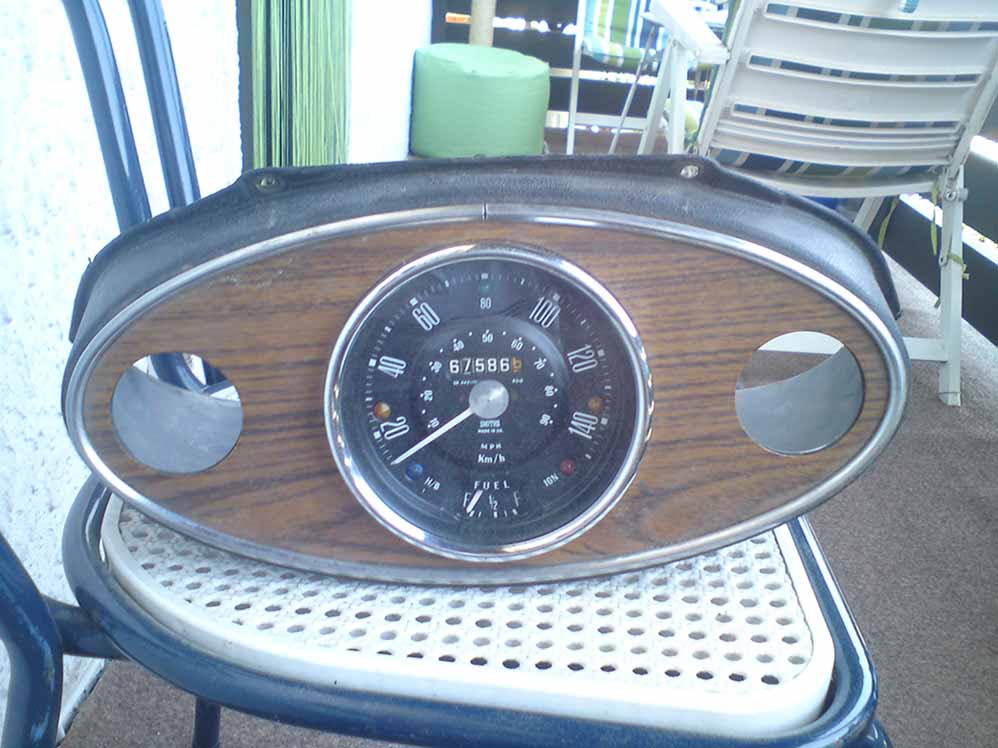 es fehlen die kleinen Instrumente links und rechts. Das Holz ist in gutem Zustand. Der Tacho hat von hinten leichten Flugrost. Der Chrom vom Zierring könnte mal poliert werden.Der Tacho funktioniert. Bitte bedenkt, dass es sich hier um ein ca. 40 Jahre altes Teil handelt.Preis 50€ zzgl. Versand, kann auch im Kreis MKK abgeholt werden.Gruß