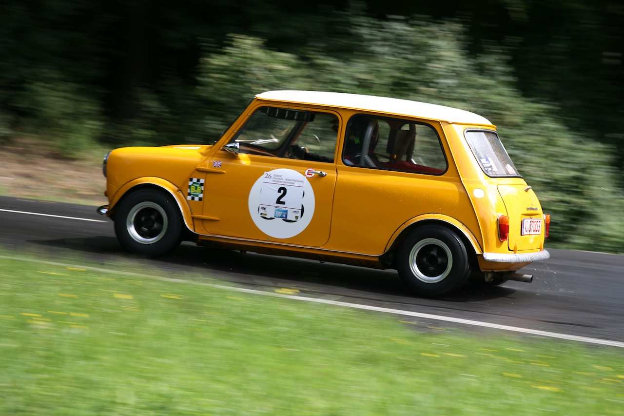 1964er MINI Cooper S Rennwagen, ideal für Bergrennen oder Rundstrecke, oder leichter Umbau für Straßenzulassung (Licht und Blinker sind angeschlossen). Das Auto hat ein British Heritage Certificate.