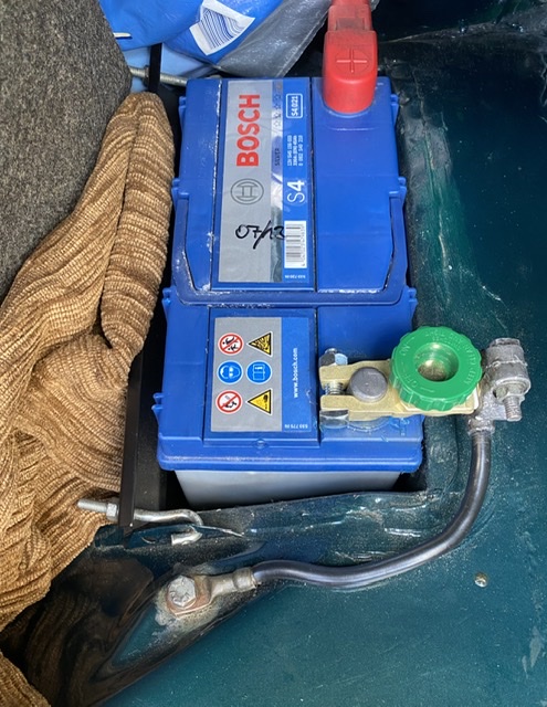 und bei der Gelegenheit die Batterie mit dem so unmotiviert rumliegenden Klemmbügel richtig befe