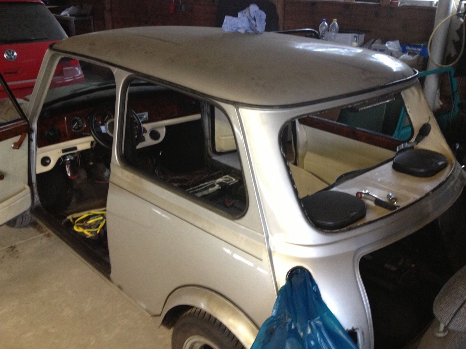 Der Mini steht bei einem Bekannten der mir alle Schweißarbeit macht. Das war so im preis mit vereinbart.Die ersten Reaktionen musste ich erstmal gut schlucken aber wenn ich darüber nachdenke, würde es mir echt schwer fallen, alles sofort wieder hinzuwerfen.