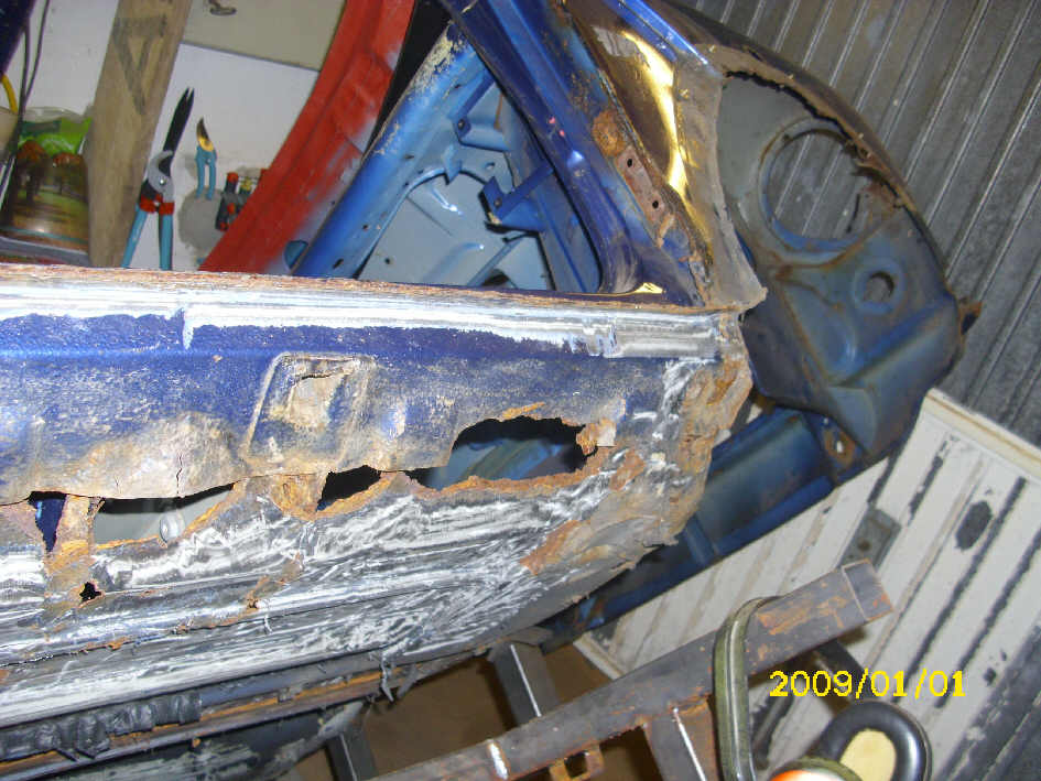 (denn es gibt keinen Betugspunkt mehr, da das Armaturenbrett oben nur noch an den Ecken fest war und die Stehwand komplett von links nach rechts ca. 5 cm weggerostet war.)