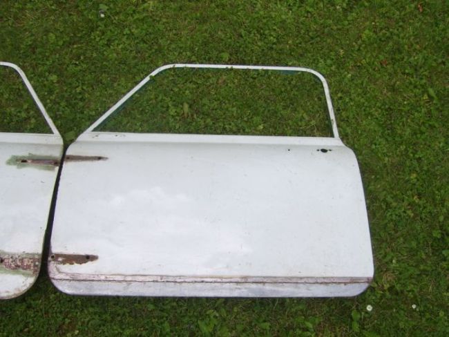 Beide sind total blank ohne Scheiben und anderem Innenleben und haben an verschiedenen Stellen ein wenig Rost. Bei der Fahrertür wurde scheinbar schon einmal unten an der Türhaut ein Blech angeschweißt, was aber sehr gut gemacht aussieht. Zudem gibt es keine Durchrostungen.An sich müssten sie nur wieder ein wenig wieder hergerichtet werden, dann sehen die wieder top aus.