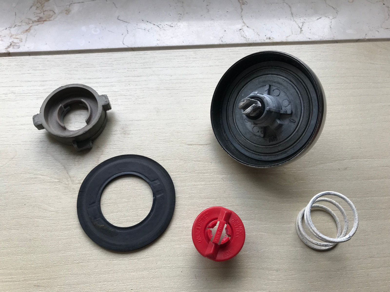Mein Tankdeckel sieht aus wie der ganz oben von Hubert, nur mit rotem Plastik und unbelüftet.