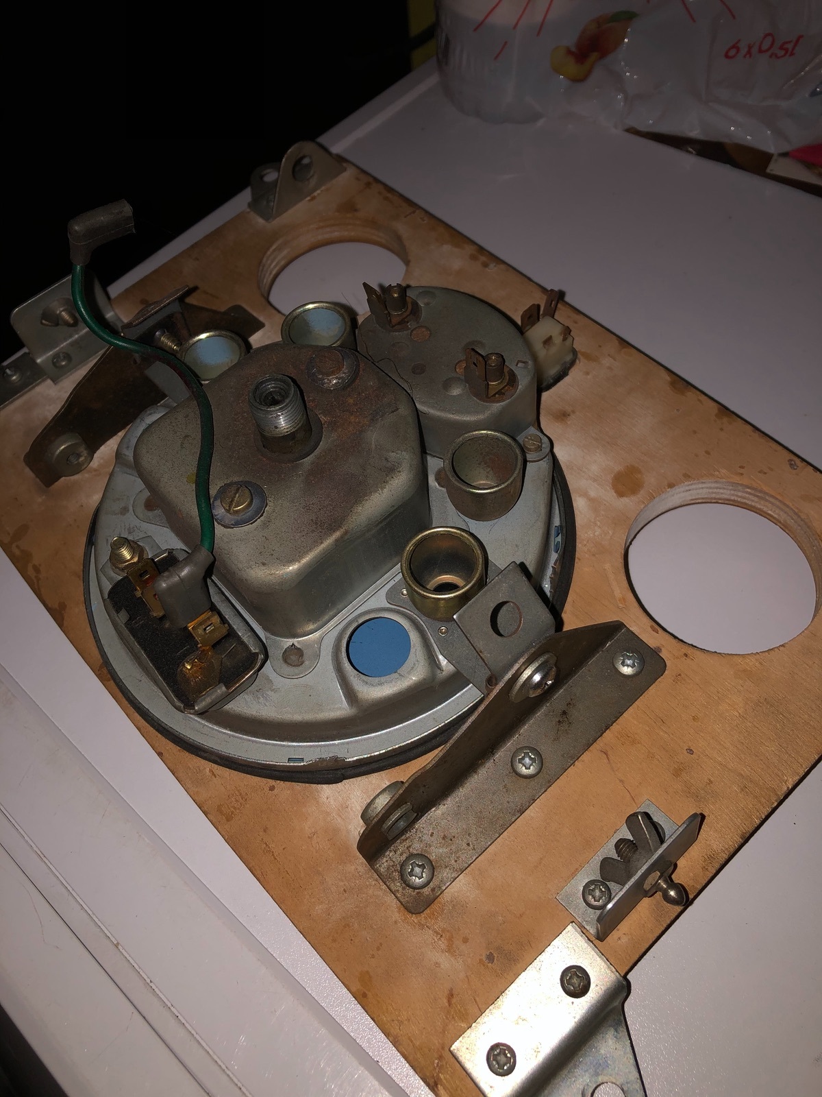 Tacho hängt am Holzteil mit 2 Schrauben die mittleren Löcher