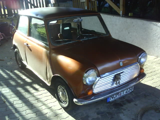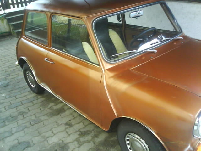 Der Vorbesitzer hatte schon einige Teile in den 80gern geschweißt und den Mini dann mit Sprühdose Lackiert (Kupferfarben).