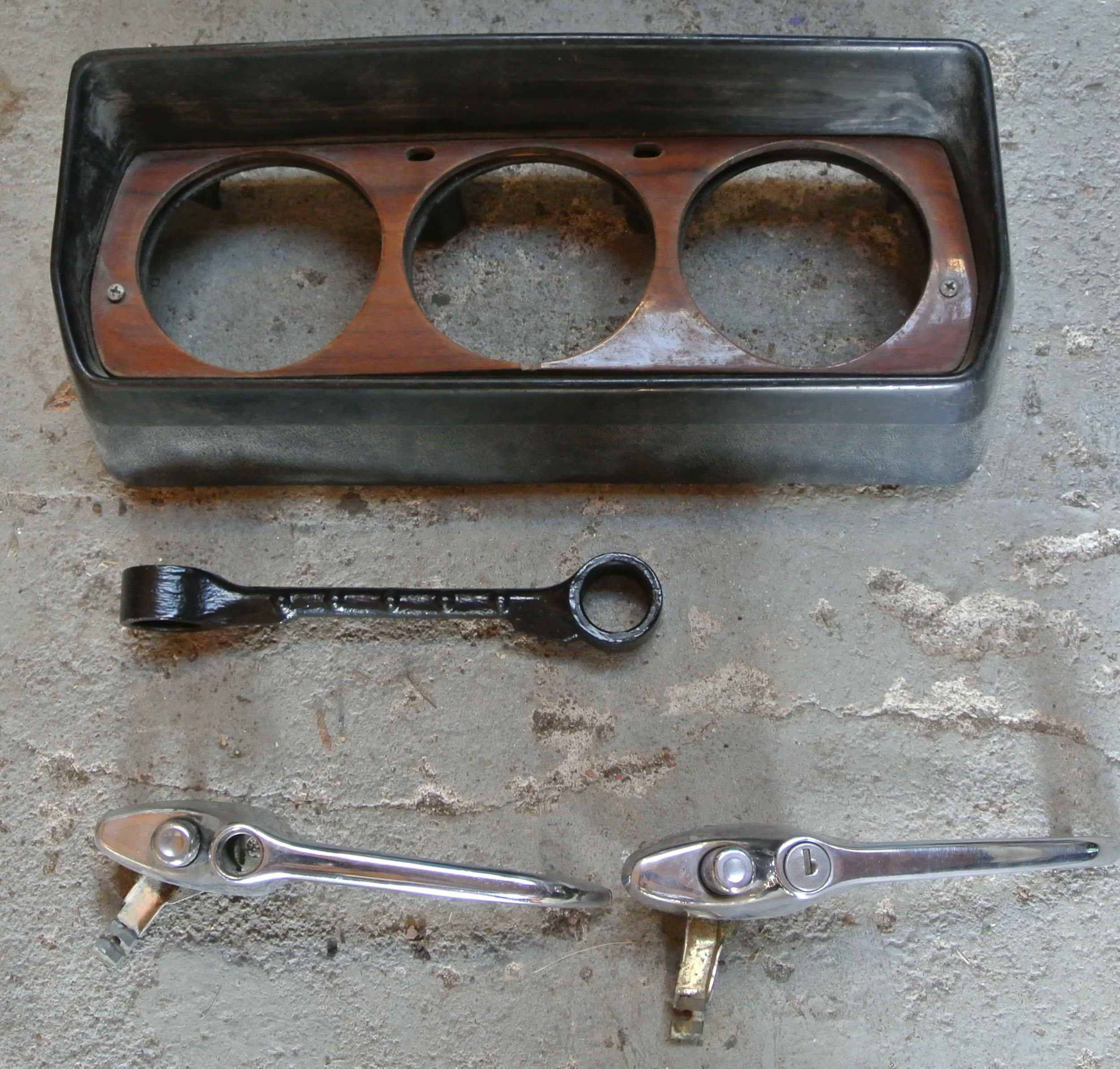 Verschiedene Schalter. Links Lichtschalter, mit LED nachgerüstet. Geht an bei Standlicht. Zusätzlich mit Vorwiderstand, kann man an Zündungsplus anschliessen, dann leuchtet die LED dunkler, wenn die Zündung an ist und wird heller, wenn man das Licht einschaltet. 10€