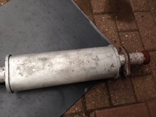 Das Doppelrohr sieht noch super aus, der Schalldämpfer an sich bekam mal eine Silberdusche.
