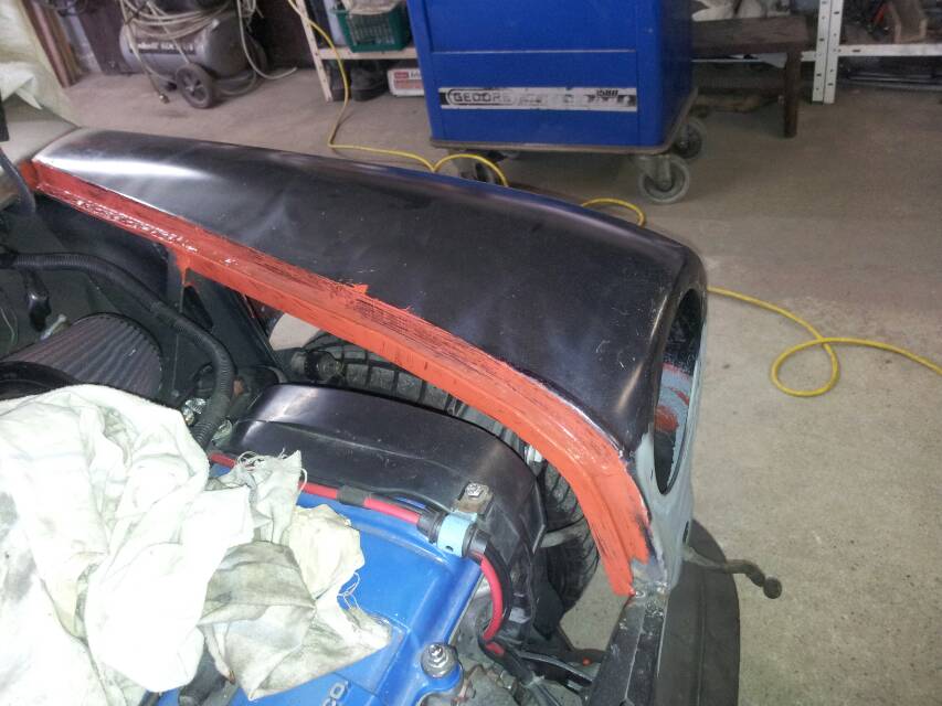 Innenkotflügel mit t Profil verstärkt heckdeckel aus gfk.