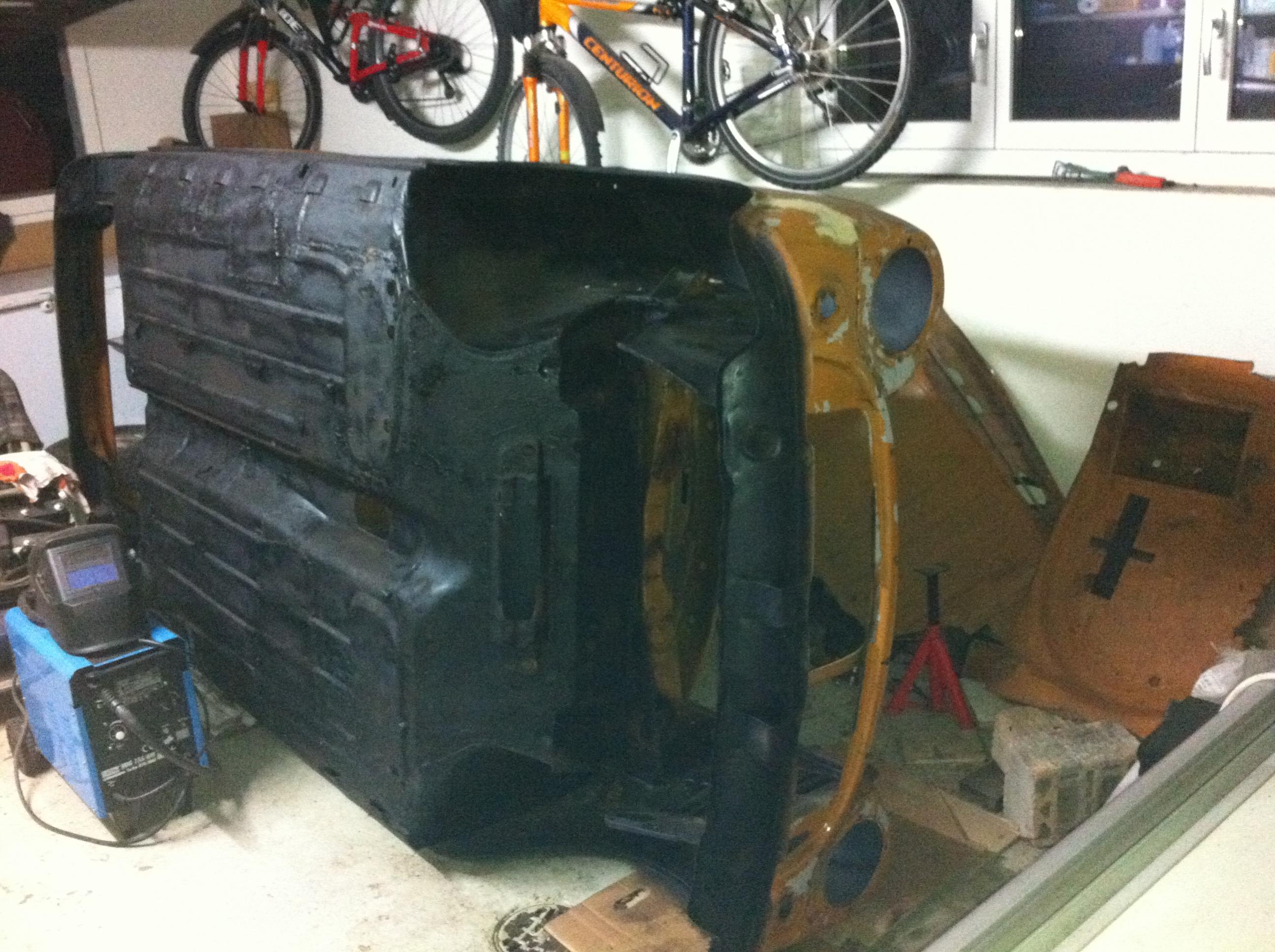 Die Idee von mir war die Karosserie, die ich vom Schrott bewahrt habe noch für irgendetwas einzusetzen. Und wenn es mit dem Rennprojekt nichts wird, kann ich ihn immer noch als Blumentopf