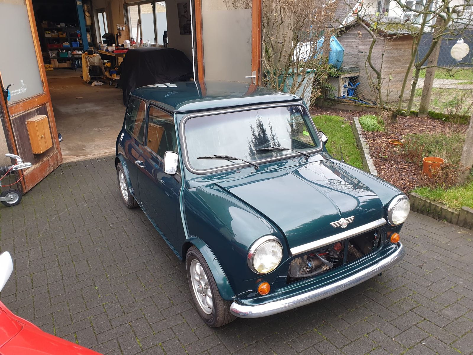 Wir bieten einen unserer Projektminis zum Kauf an. Der Mini hat im Jahr 2021 einen vollständigen Wasserschaden bei einem unserer Partnerbetriebe erlitten. Dabei wurde der gesamte Mini überflutet. Innerhalb von 14 Tagen nach der Flut wurde die Flüssigkeit aus dem Motor abgelassen und der Motor mit einem Reinigungsölgemisch von innen mehrmals gespült. Dazu wurden die Polster gereinigt und versucht den Kabelbaum und die Steckverbindungen zu reinigen. Der Mini wurde teilzerlegt und weitestgehend gereinigt, insbesondere im Innenraum.Als Winterprojekt für das Jahr 2021/2022 gedacht sind wir jedoch nicht dazu gekommen den Mini wieder auf die Strasse zu bringen und auch in diesem Winter gehen andere Projekte vor. Die Substanz ist als gut zu bezeichnen, es lassen sich lediglich im vorderen Fußraumbereich alte Korrosionsschäden finden. Für den TÜV müssen lediglich 2 kleine Stellen im Fußraum geschweißt werden. Es empfiehlt sich den gesamten Mini einmal zu zerlegen, alle Stellen zu reinigen und zu konservieren und den Kabelbaum zu tauschen. Mit einem Austauschsteuergerät konnten wir mittels Testbook auf den Mini zugreifen und auch die meisten Sensordaten abgreifen. Das Zündschloss ist jedoch defekt, sodass ein Startversuch nicht möglich ist. Die gesamte Technik muss geprüft und ggf. erneuert werden. Es liegen diverse Massefehler / Elektrikfehler vor.Wir geben zu dem Projekt mit:- Austauschsteuergerät inkl. Steuergerät für Wegfahrsperre und programmiertem Handsender- Austauschrelaisbox- neue Zündspüle- gebrauchtes HeizungsgebläseDer Mini ist teilzerlegt, wie auf den Bildern zu sehen, aber komplett. Inkl. der Innenausstattung und dem Original Tank. Ca. 70 Detailbilder findet ihr auf meiner Homepage: Mini SPI - Wasserschaden als Projekt - meinclassicmini.deEs befinden sich 2 Klarlackabplatzer auf dem Dach. Es kann keine Gewährleistung für jegliche Funktionsfähigkeit übernommen werden. Es ist u.U. ein Austauschmotor nötig. Das Getriebe funktionierte bis zum Wasserschaden laut Aussage des Verkäufers einwandfrei.