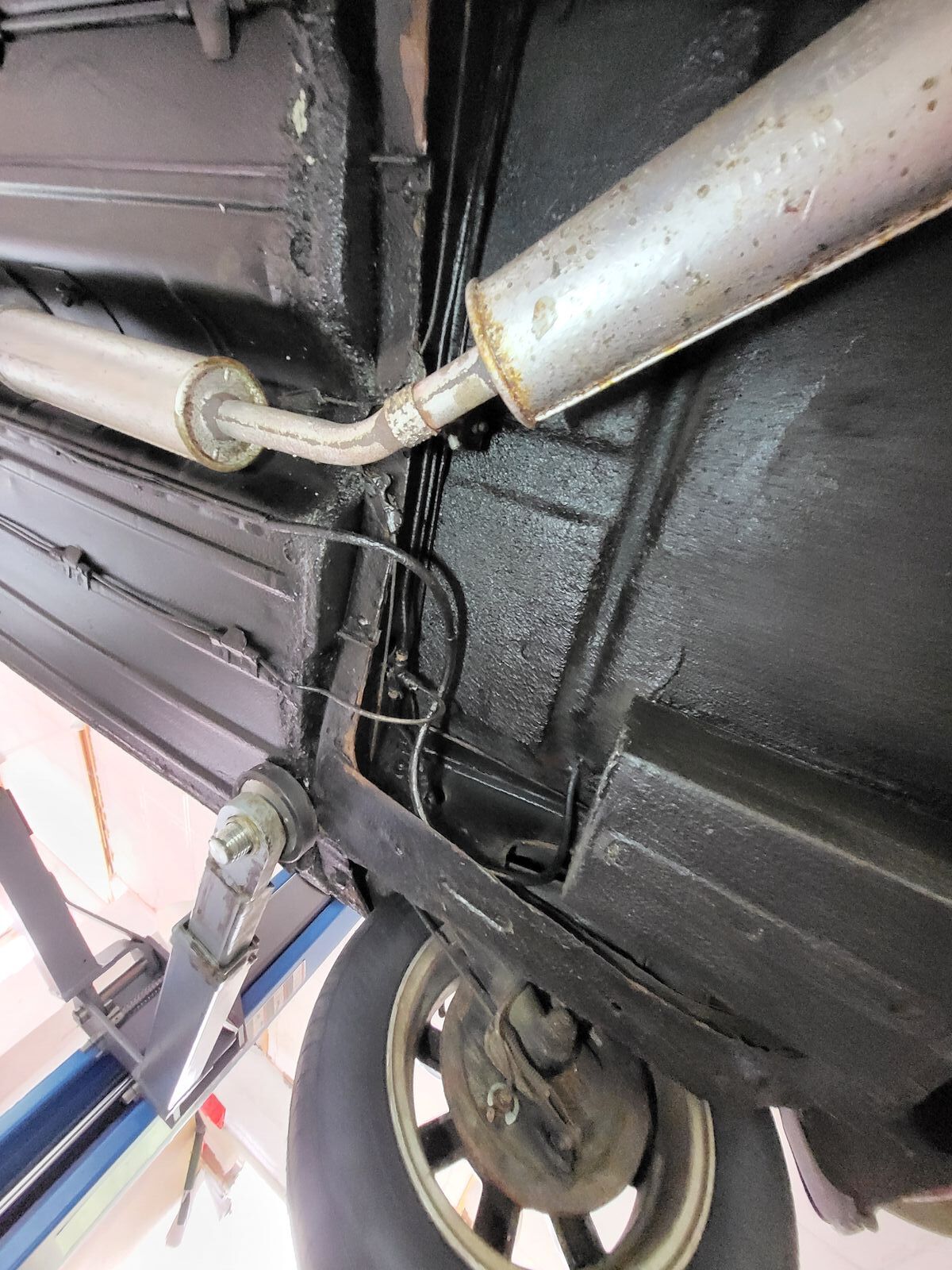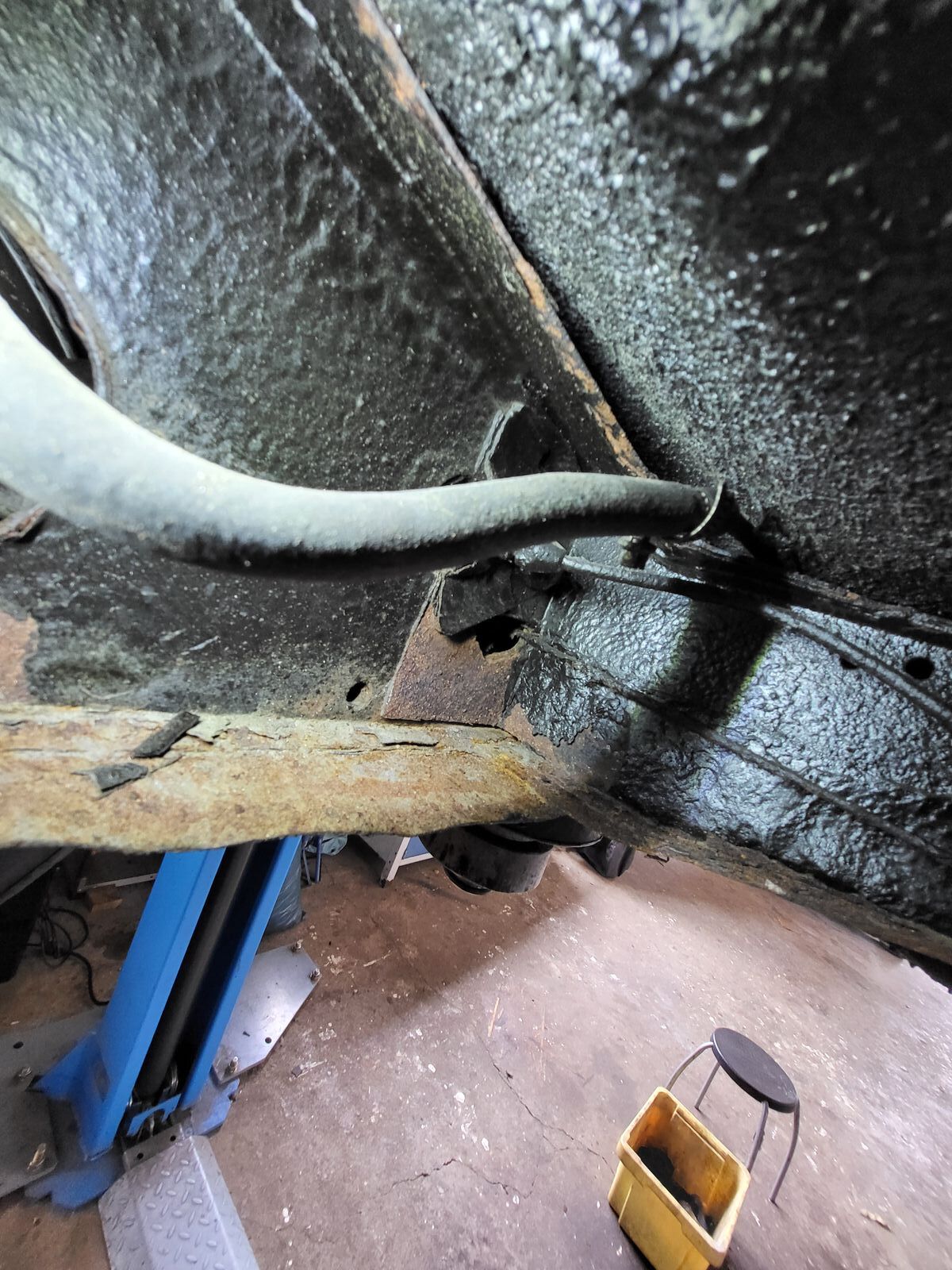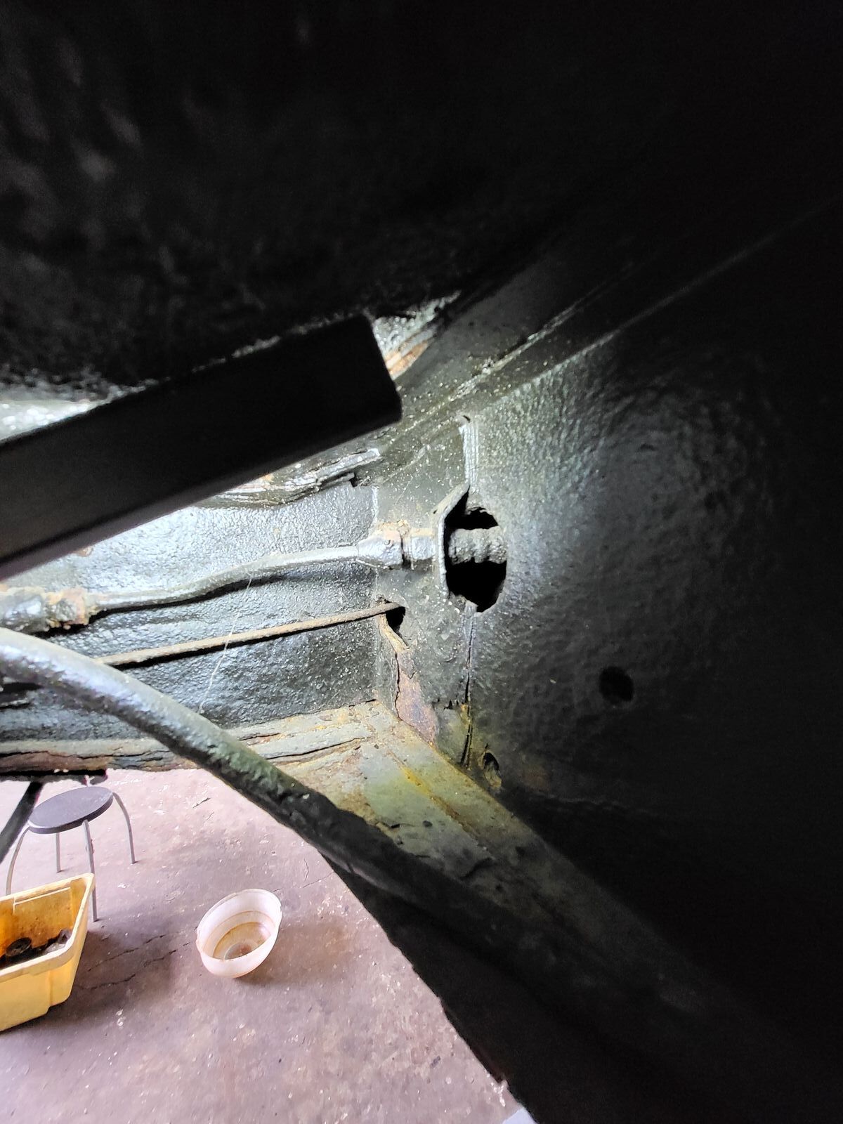 - ich vermute, beide Hilfsrahmen wurden damals gestrahlt, anschließend nur sporadisch lackiert und weisen massiven Flugrostanfall auf. Entweder man macht sich jetzt die Mühe und strahlt und lackiert nochmal neu, oder verbaut direkt neue / gebrauchte.