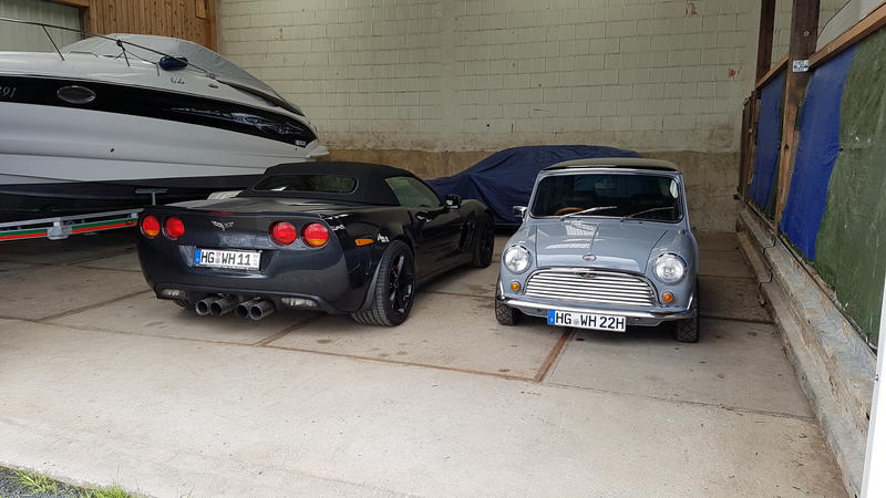 Der Rest ist Geschichte: Kontakt reaktiviert, Auto gekauft, leider gleich kaputtgefahren (Zugstrebe abgerissen, da lenkt es sich schlecht), wieder ganz neu aufgebaut (selbst der beste Mini zeigt nach so einem Klatsch seine Schwachstellen und Andreas erinnert sich jetzt einige Jahre an mich!) und jetzt steht er auf meinem 'Vorfeld' - etwas blass und bescheiden aber mit ordentlich Bums - und es fehlt nur noch stabileres Wetter.
